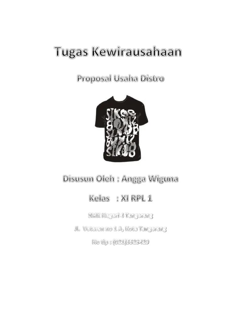 Menyelesaikan tugas kewirausahaan ini dengan baik dan tepat waktu. Contoh proposal usaha toko distro download Download contoh proposal usaha lengkap untuk keperluan pendirian dan pengembangan usaha anda. Usaha baju distro online ppt download. Unduh contoh proposal usaha distro kaos disni.