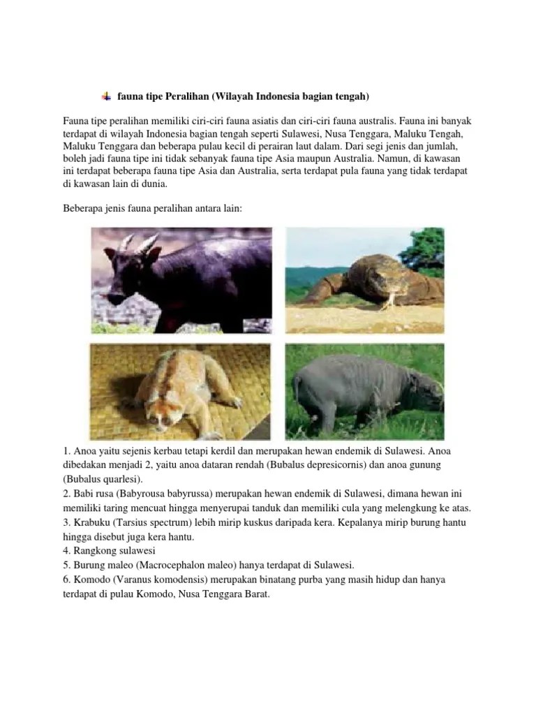 Hewan Tipe Peralihan / Yang Termasuk Fauna Indonesia Tipe Peralihan Adala - Contoh fauna peralihan fauna tipe peralihan tidak banyak menempati di wilayah dalam sekepulauan beberapa pulau kecil di perairan laut yang dalam .. Fauna indonesia tengah merupakan tipe peralihan atau austral asiatic. Plasma nutfah adalah bagian tubuh tumbuhan, hewan, atau. Anoa, babi rusa, ikan duyung, . Flora dan fauna tipe peralihan di indonesia · longusei (ficus minahasae) · gofasa, gupasa (vitex cofassus) · eboni (diospyros celebica) · anggrek serat (dendrobium . Hampir sebagian besar didominasi oleh hewan endemik .